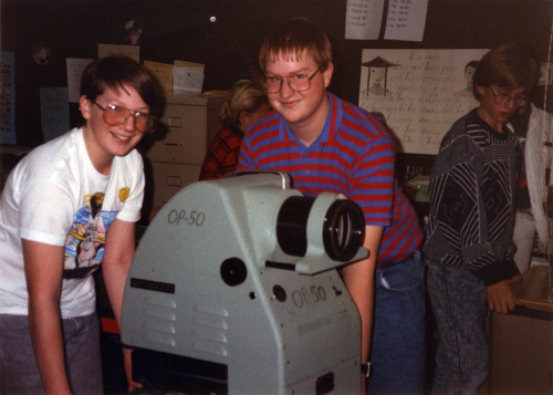 Another time waster for me is scanning old pictures. This time I send a large batch of photos, close to 500, to Scan Cafe to be scanned for me. I have not gotten them back, but got to see the thumbnails online and picked a couple that made me laugh. The first is me and Randy Vath in middle school during my “skater” days. The second is in high-school, Brad Nuss and I were “featured” in a Post Bulletin article about the advanced physics classes that Mayo offered. Of course they picked us doing something extremely geeky and moving equipment.