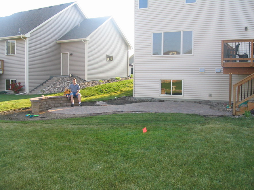 Finally our patio is done. I have a picture when it was not quite completed and also before Danith and I finished rocking and landscaping around it. We also purchased a nice set of patio furniture from Fleet Farm, on clearance I might add. Really the picture does not do it justice, so…